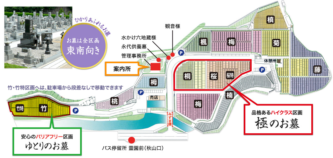 墓地単価(永代使用料):区画によって異なります。お問い合わせください。
